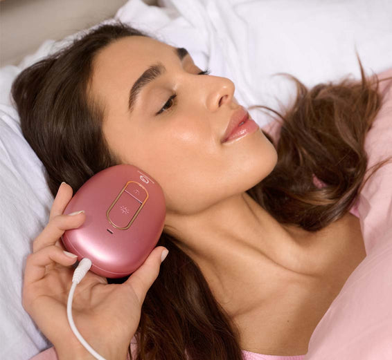 Turn your device on and select your intensity. Lumi has 6 intensity levels to choose from – we recommend choosing the lowest level for your first treatment and working up from there.
