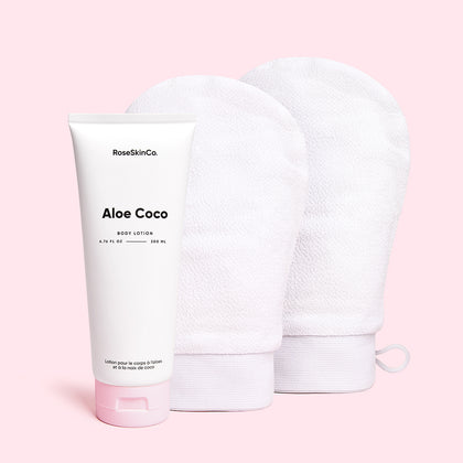 Gently yet powerfully remove dead skin cells with the Glow Glove to reveal softer, smoother, more radiant skin, then follow with natural-ingredient-packed Aloe Coco Body Lotion to soothe the skin and keep it hydrated.